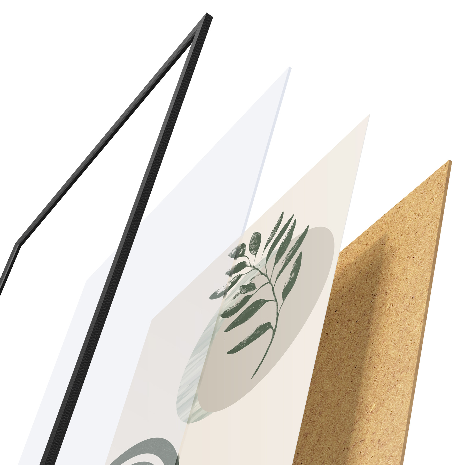 Das Poster besteht aus einem Rahmen, Plexiglas, einem gedruckten Bild und einer Rückwand aus Spanplatten. Dank der Halterungen auf der Rückseite kann das Poster sofort an die Wand gehängt werden.