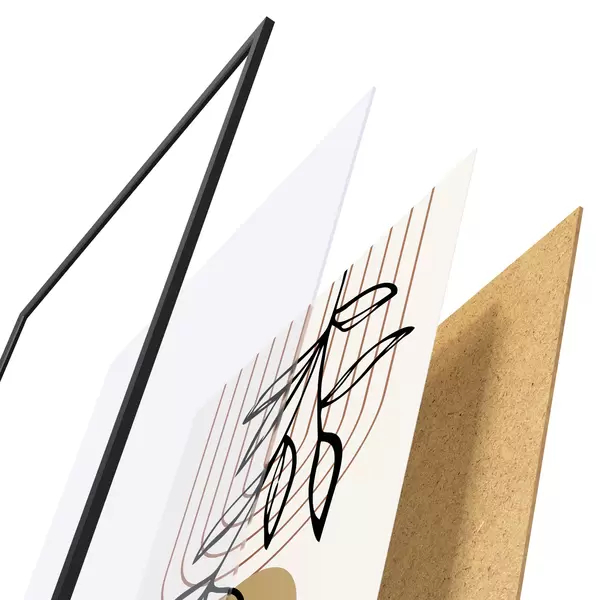 Das Poster besteht aus einem Rahmen, Plexiglas, einem gedruckten Bild und einer Rückwand aus Spanplatten. Dank der Halterungen auf der Rückseite kann das Poster sofort an die Wand gehängt werden.