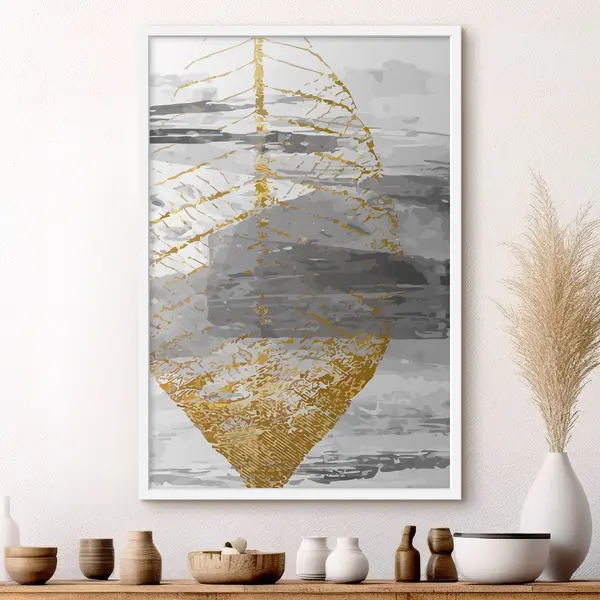Poster Elegantes Blatt in gedeckten Farbtönen Nr f36483