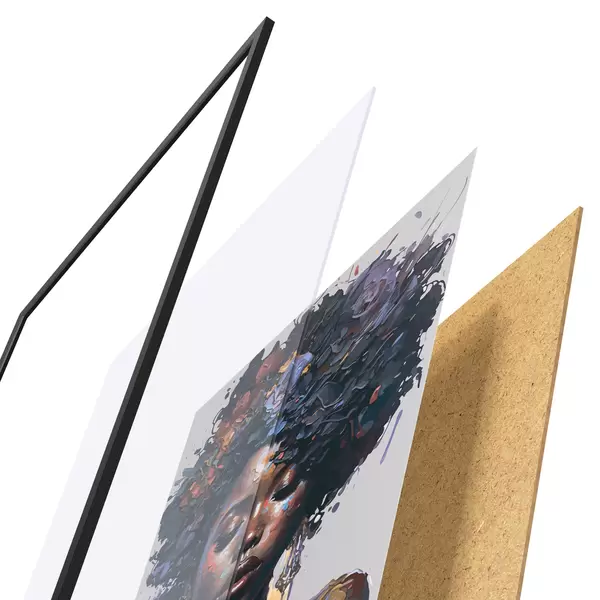 Das Poster besteht aus einem Rahmen, Plexiglas, einem gedruckten Bild und einer Rückwand aus Spanplatten. Dank der Halterungen auf der Rückseite kann das Poster sofort an die Wand gehängt werden.