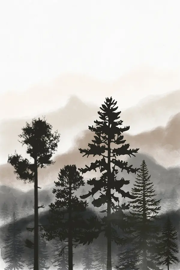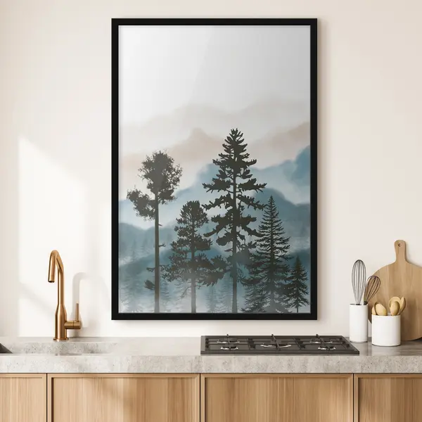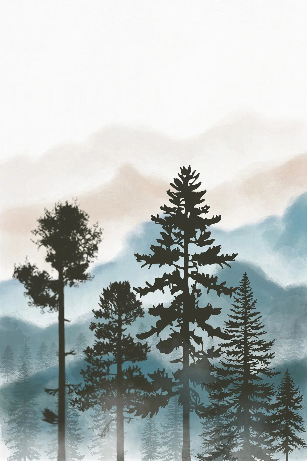 Poster Nebelverhangene Waldsilhouette im Morgengrauen Nr f36605