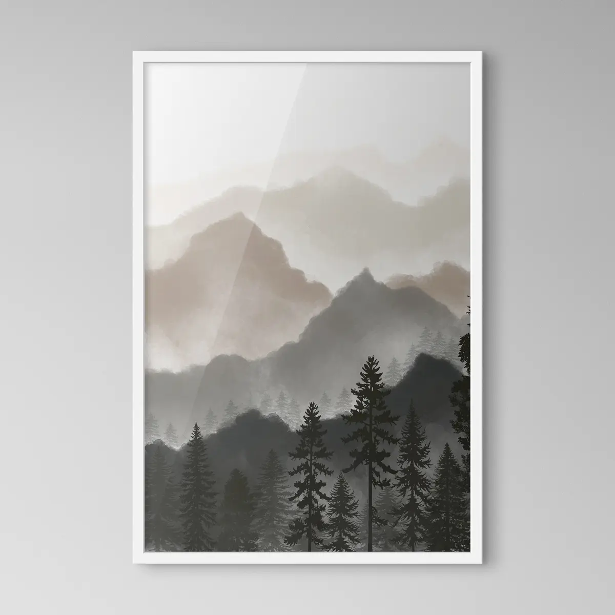 Poster Ruhige Berglandschaft mit hoch aufragenden Bäumen Nr f36607v1