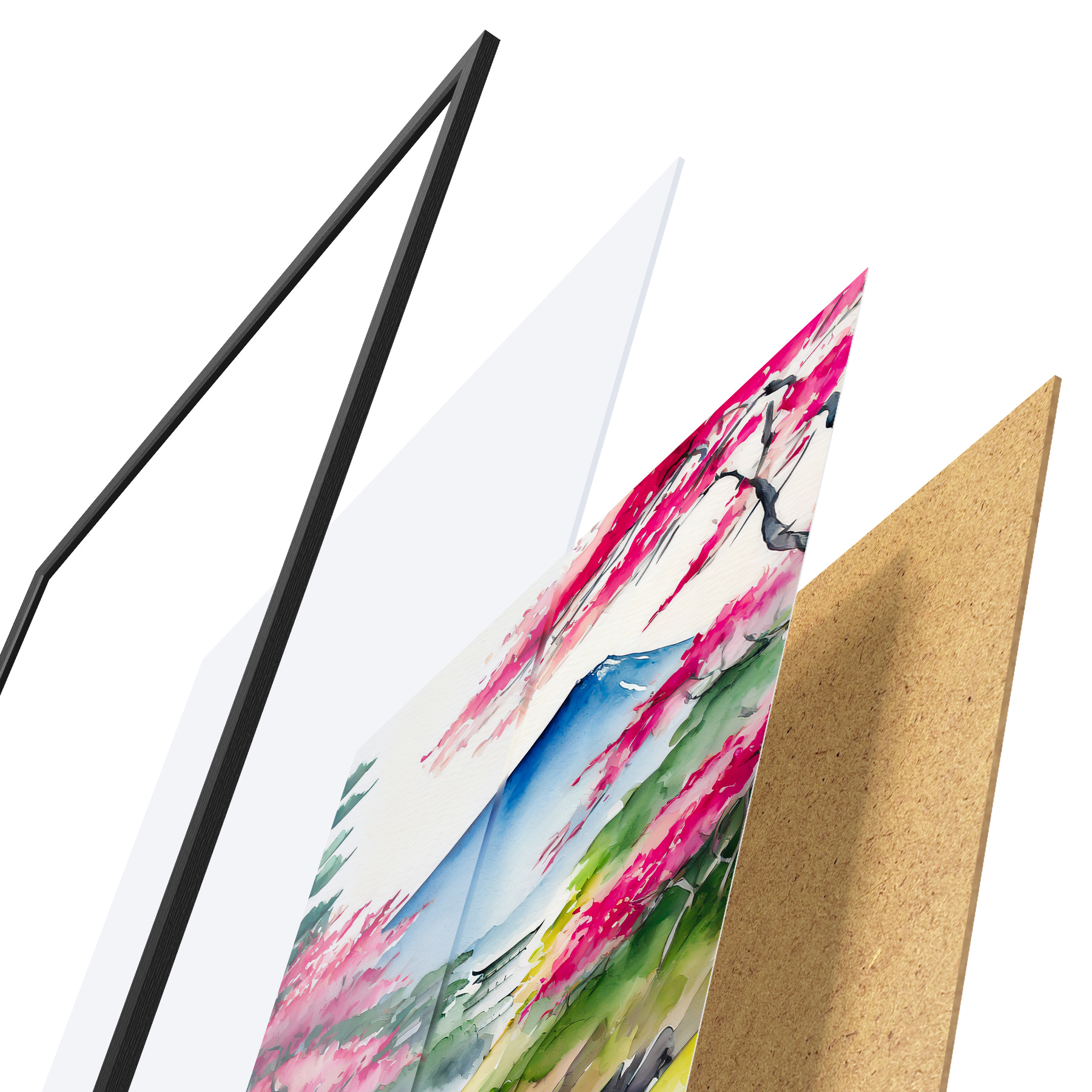 Das Poster besteht aus einem Rahmen, Plexiglas, einem gedruckten Bild und einer Rückwand aus Spanplatten. Dank der Halterungen auf der Rückseite kann das Poster sofort an die Wand gehängt werden.