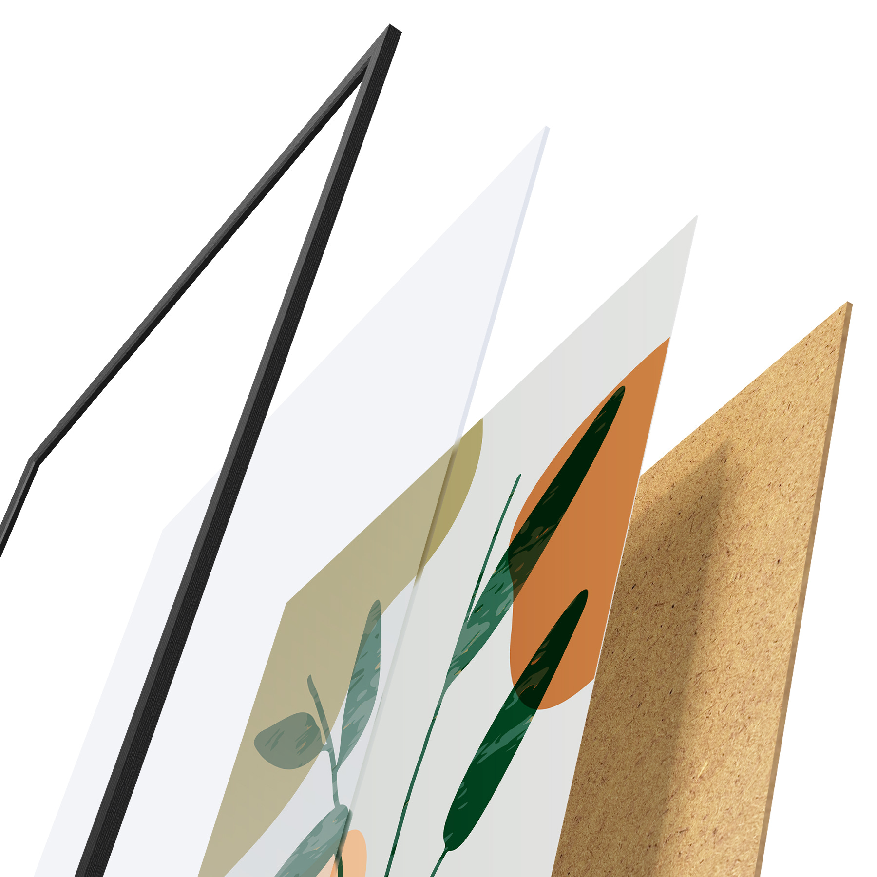 Das Poster besteht aus einem Rahmen, Plexiglas, einem gedruckten Bild und einer Rückwand aus Spanplatten. Dank der Halterungen auf der Rückseite kann das Poster sofort an die Wand gehängt werden.