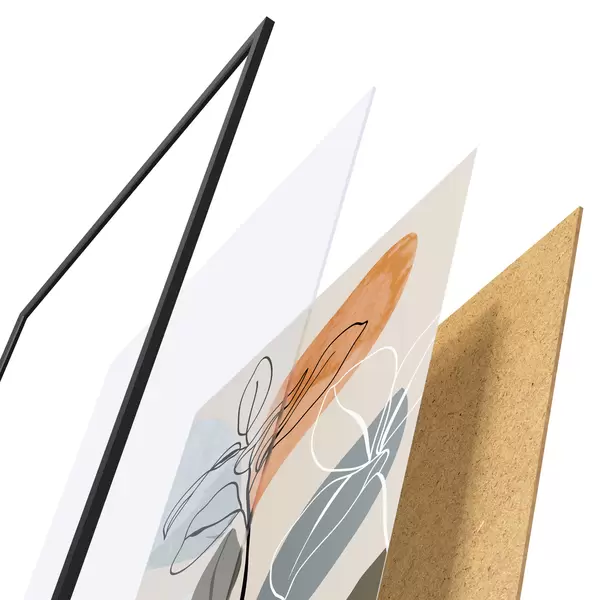 Das Poster besteht aus einem Rahmen, Plexiglas, einem gedruckten Bild und einer Rückwand aus Spanplatten. Dank der Halterungen auf der Rückseite kann das Poster sofort an die Wand gehängt werden.