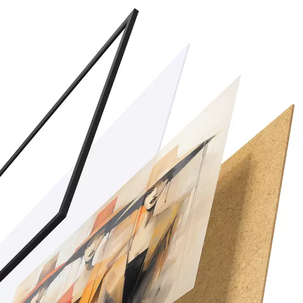 Das Poster besteht aus einem Rahmen, Plexiglas, einem gedruckten Bild und einer Rückwand aus Spanplatten. Dank der Halterungen auf der Rückseite kann das Poster sofort an die Wand gehängt werden.