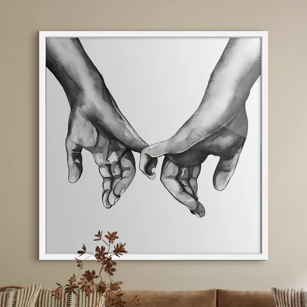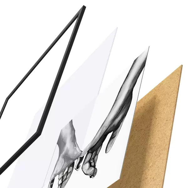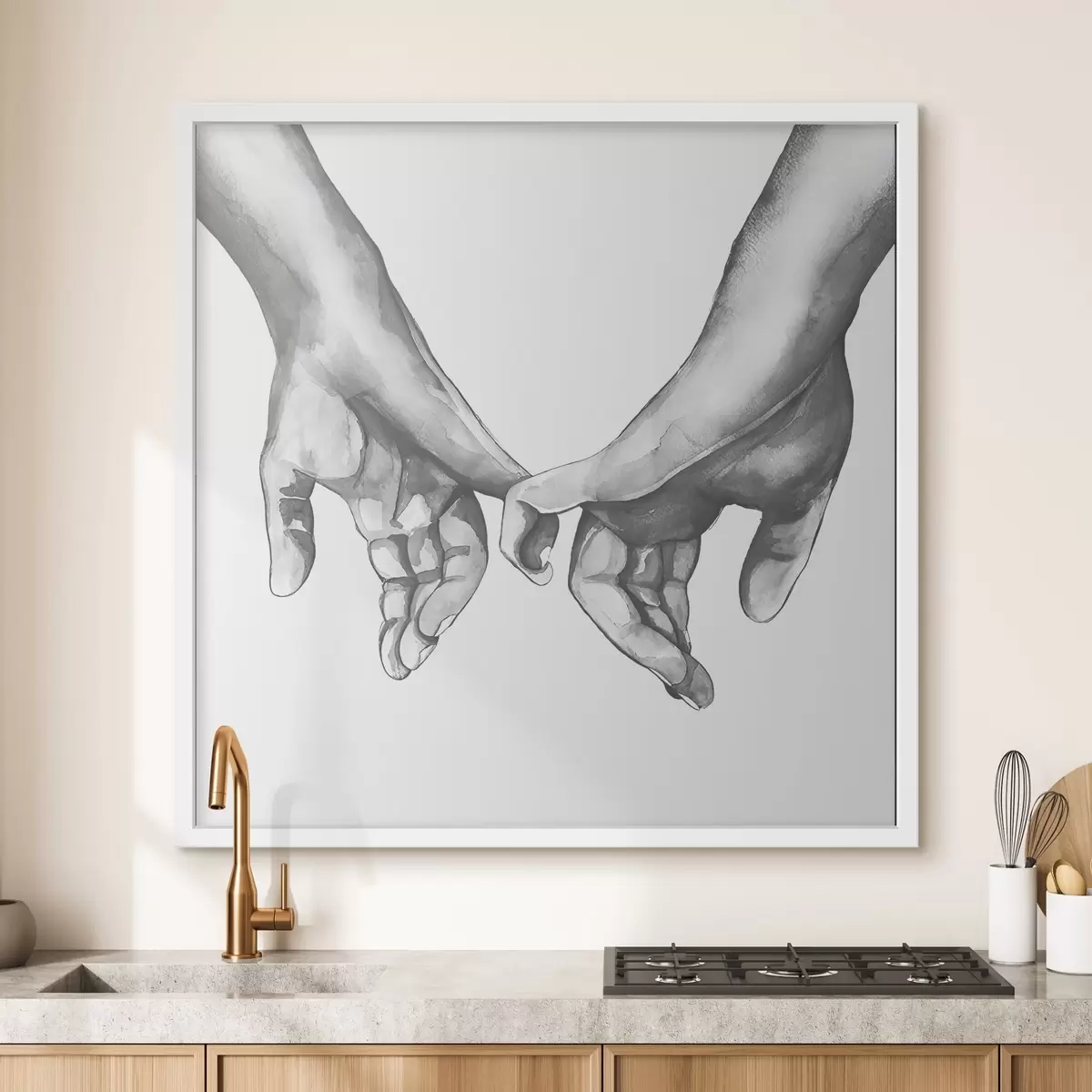 Poster Schwarz und Weiß halten Hände auf einem weißen Hintergrund Nr f36848