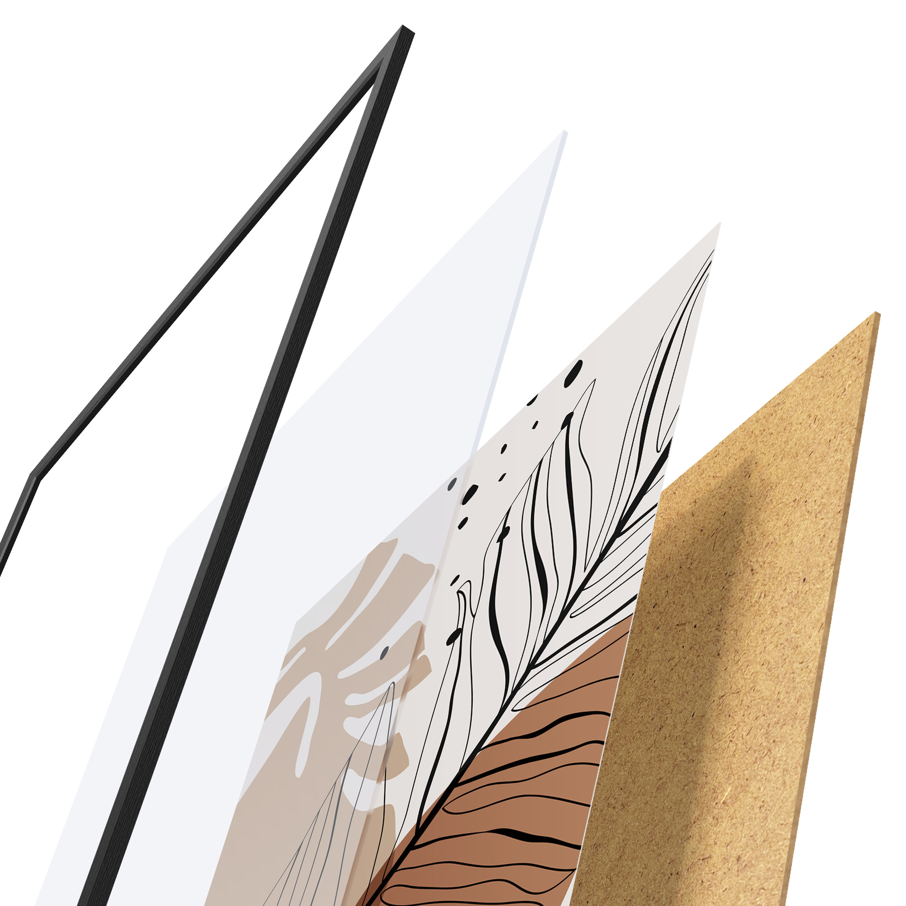 Das Poster besteht aus einem Rahmen, Plexiglas, einem gedruckten Bild und einer Rückwand aus Spanplatten. Dank der Halterungen auf der Rückseite kann das Poster sofort an die Wand gehängt werden.