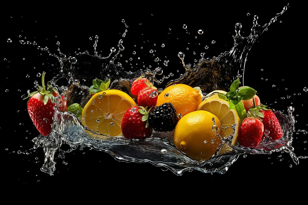 Poster Früchte, die in erfrischendem Wasser planschen f37044