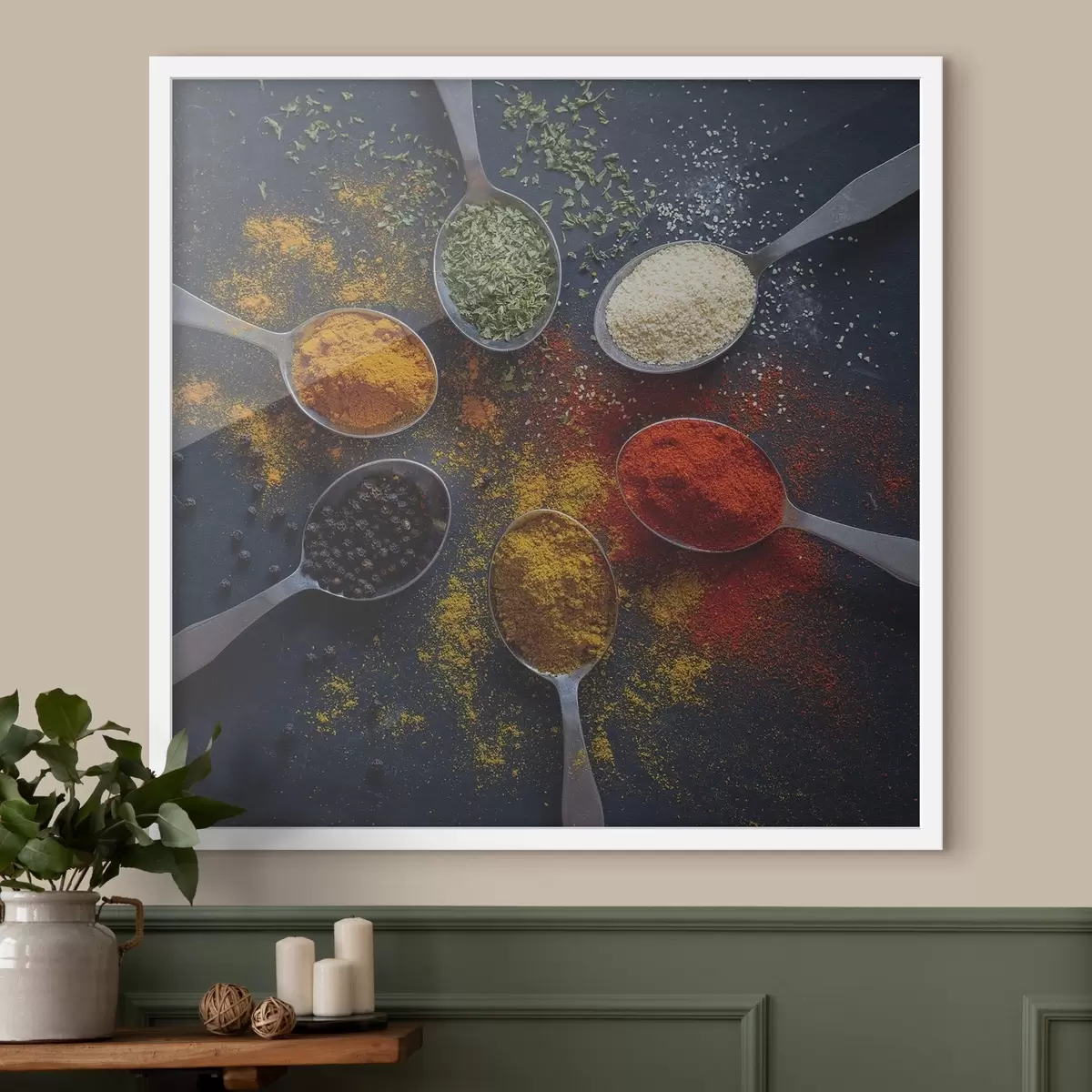Poster Gruppe von Löffeln mit verschiedenen Gewürzen f37046