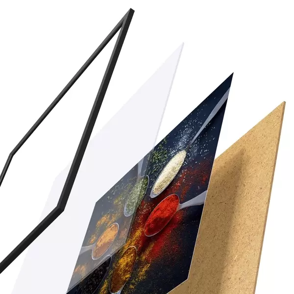 Das Poster besteht aus einem Rahmen, Plexiglas, einem gedruckten Bild und einer Rückwand aus Spanplatten. Dank der Halterungen auf der Rückseite kann das Poster sofort an die Wand gehängt werden.