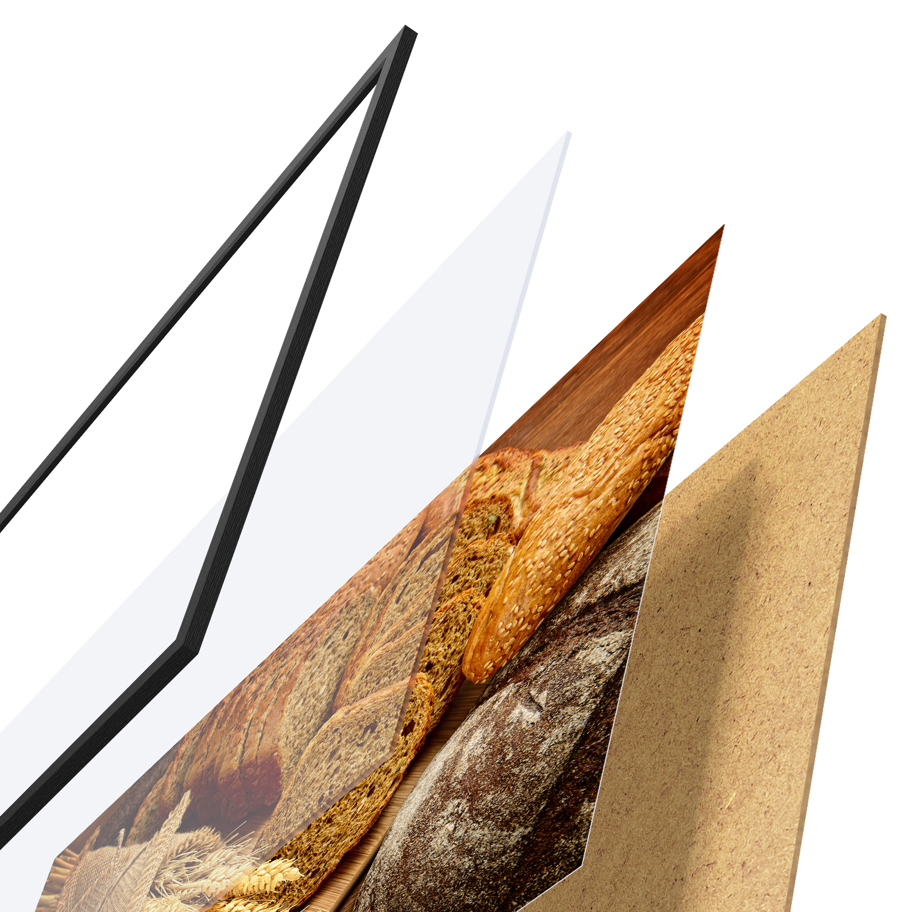Das Poster besteht aus einem Rahmen, Plexiglas, einem gedruckten Bild und einer Rückwand aus Spanplatten. Dank der Halterungen auf der Rückseite kann das Poster sofort an die Wand gehängt werden.