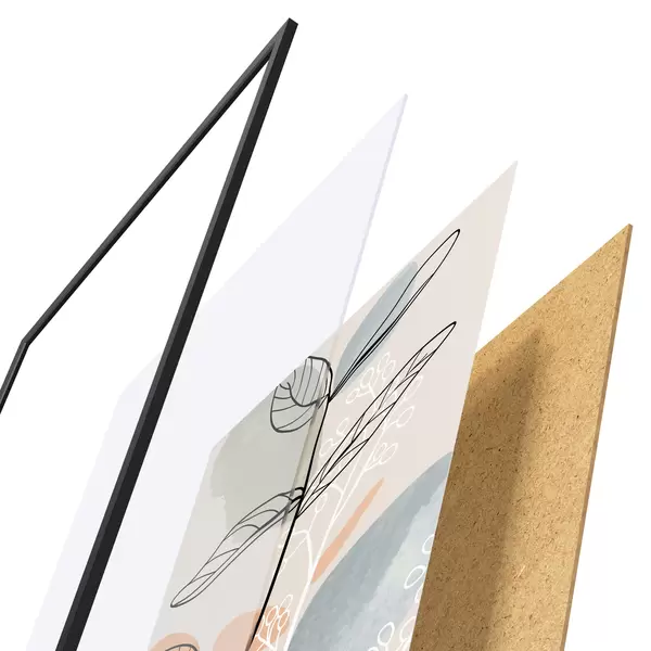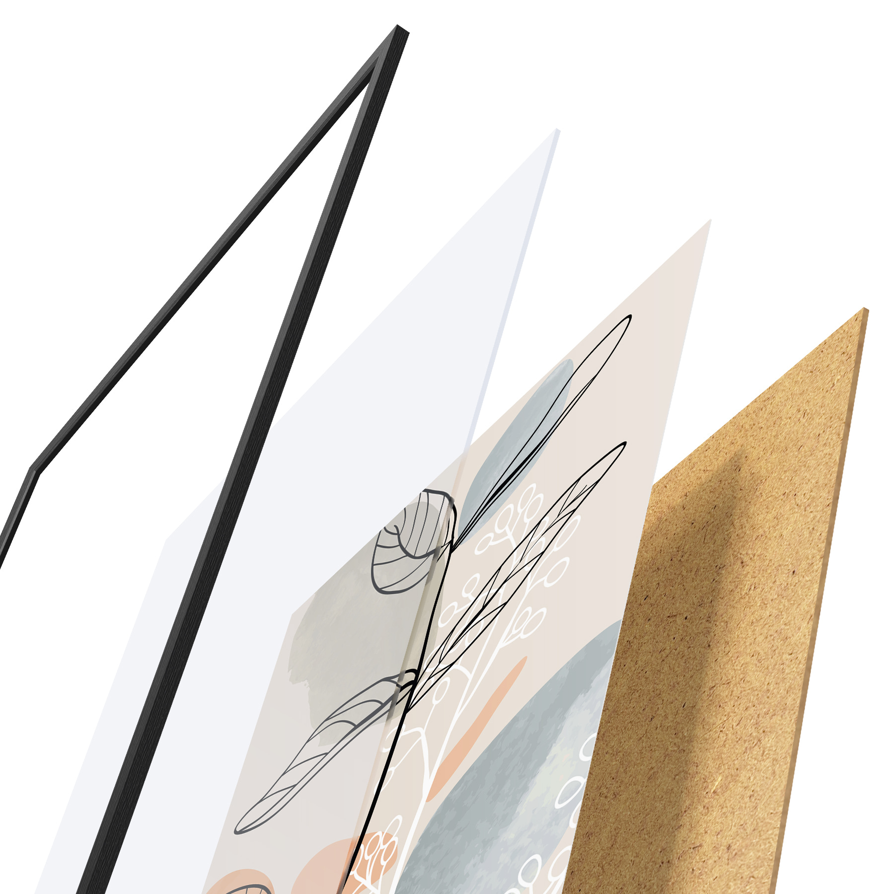 Das Poster besteht aus einem Rahmen, Plexiglas, einem gedruckten Bild und einer Rückwand aus Spanplatten. Dank der Halterungen auf der Rückseite kann das Poster sofort an die Wand gehängt werden.