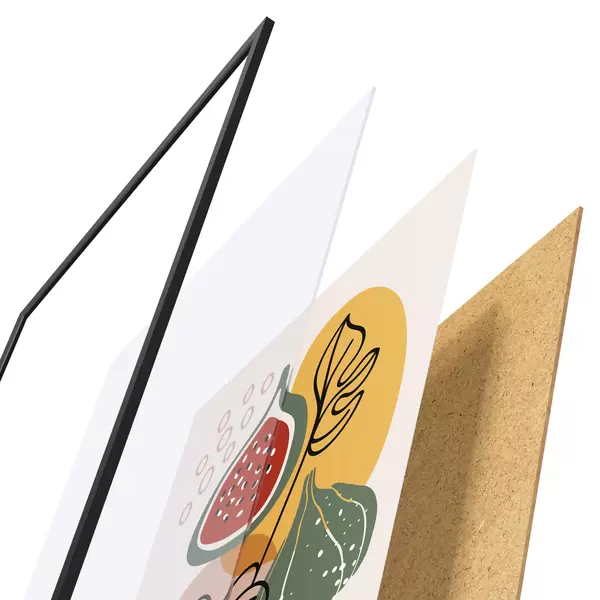 Das Poster besteht aus einem Rahmen, Plexiglas, einem gedruckten Bild und einer Rückwand aus Spanplatten. Dank der Halterungen auf der Rückseite kann das Poster sofort an die Wand gehängt werden.