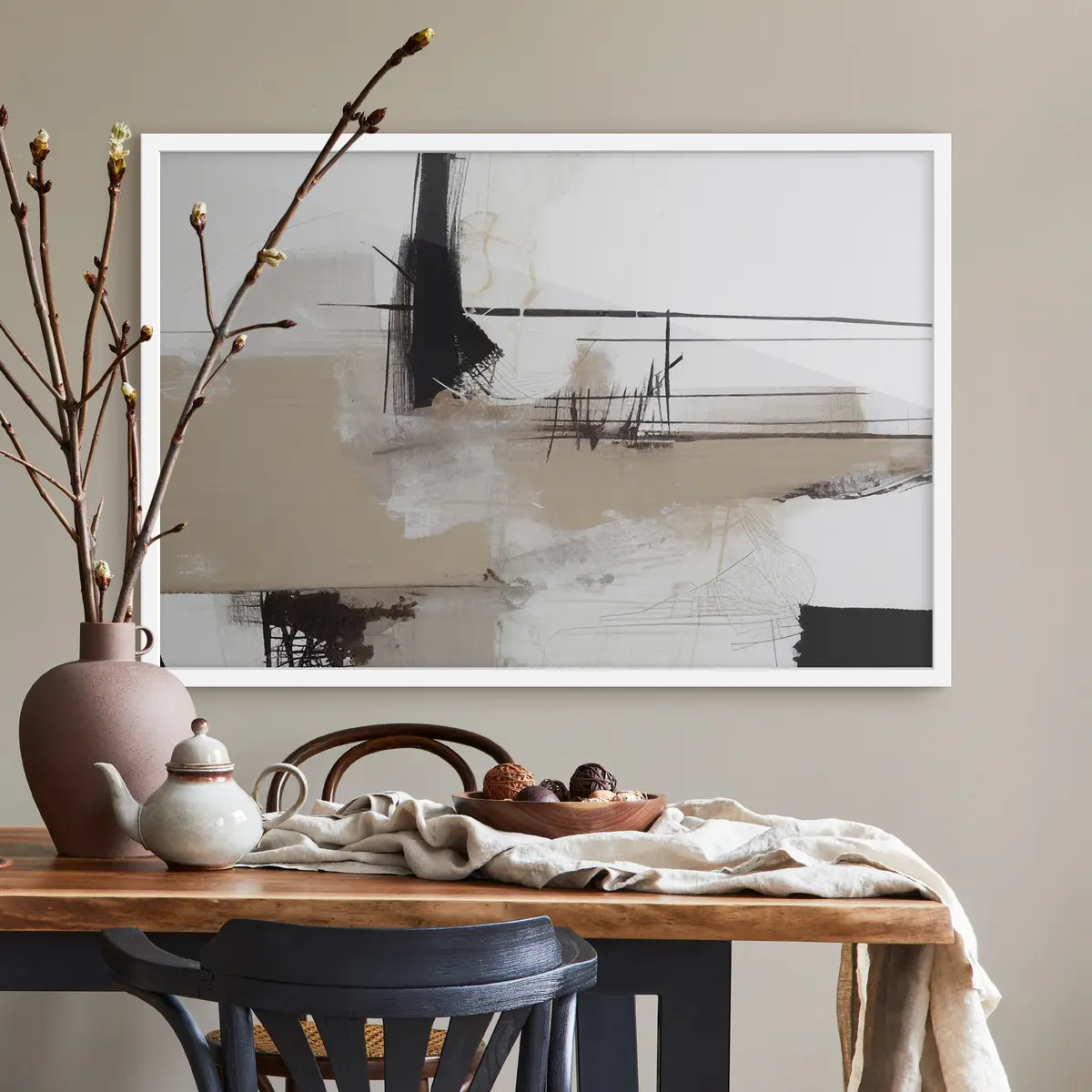 Poster Abstrakte Linien und erdige Farbtöne treffen aufeinander Nr f37067