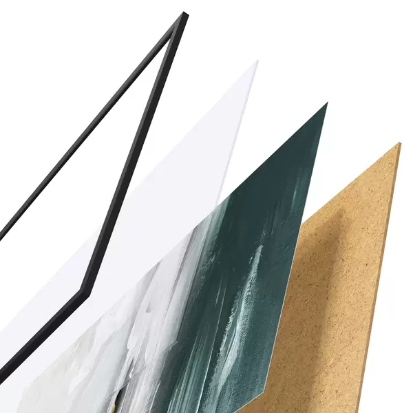 Das Poster besteht aus einem Rahmen, Plexiglas, einem gedruckten Bild und einer Rückwand aus Spanplatten. Dank der Halterungen auf der Rückseite kann das Poster sofort an die Wand gehängt werden.