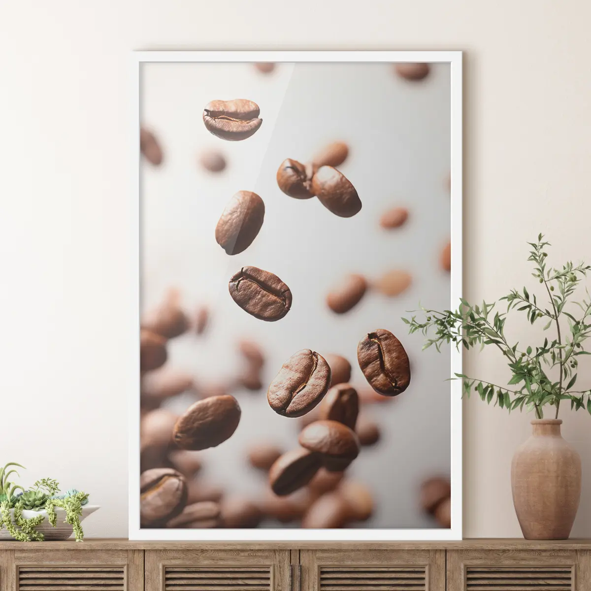 Poster Schwimmende Kaffeebohnen in Bewegung f37171