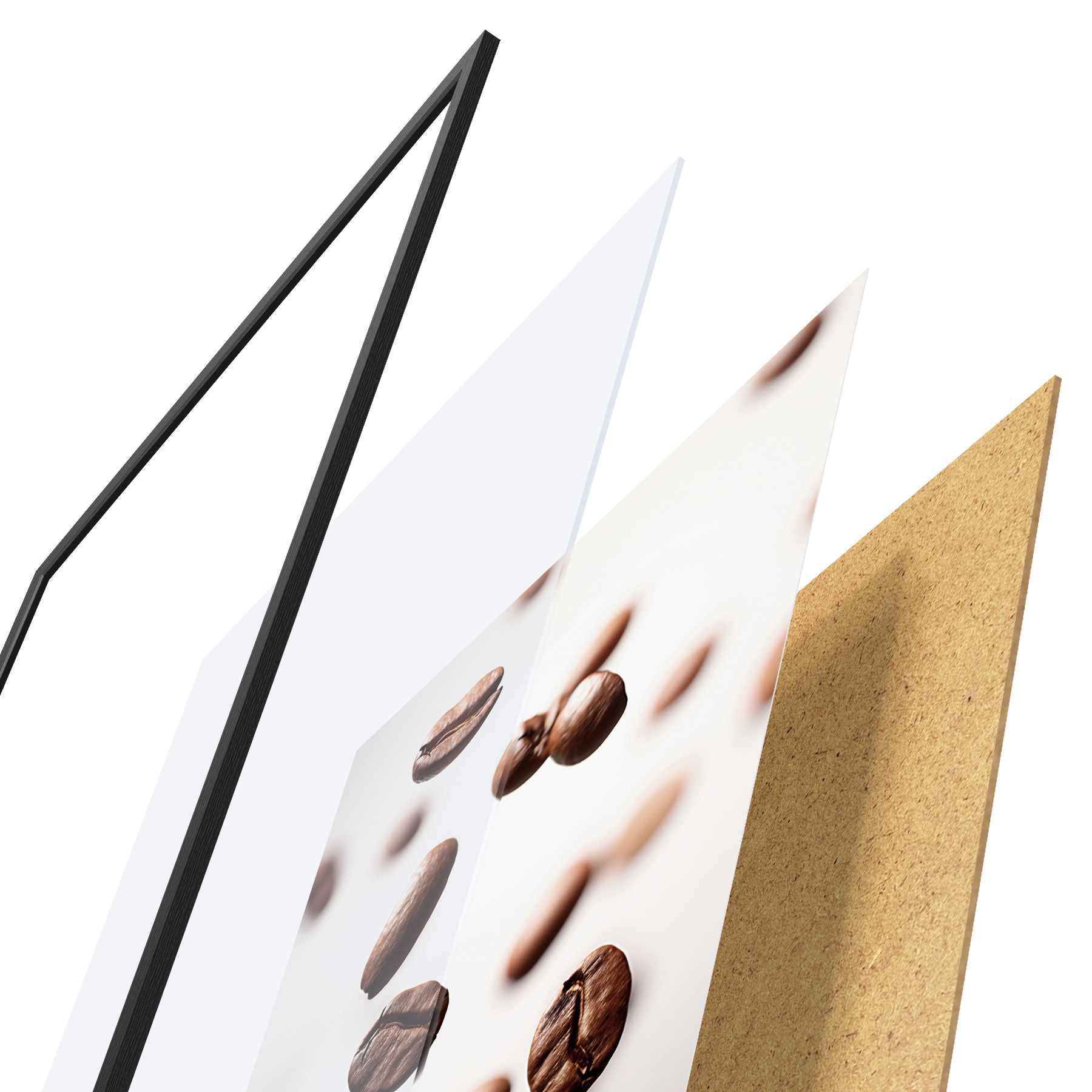 Das Poster besteht aus einem Rahmen, Plexiglas, einem gedruckten Bild und einer Rückwand aus Spanplatten. Dank der Halterungen auf der Rückseite kann das Poster sofort an die Wand gehängt werden.