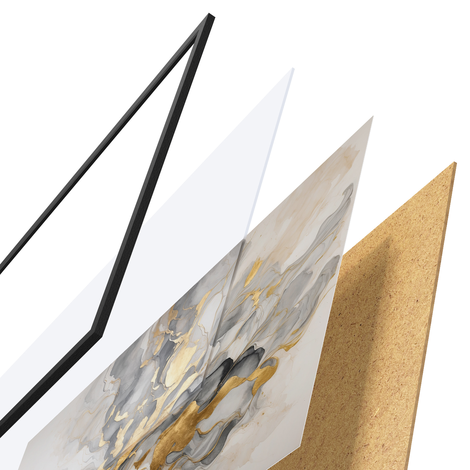 Das Poster besteht aus einem Rahmen, Plexiglas, einem gedruckten Bild und einer Rückwand aus Spanplatten. Dank der Halterungen auf der Rückseite kann das Poster sofort an die Wand gehängt werden.
