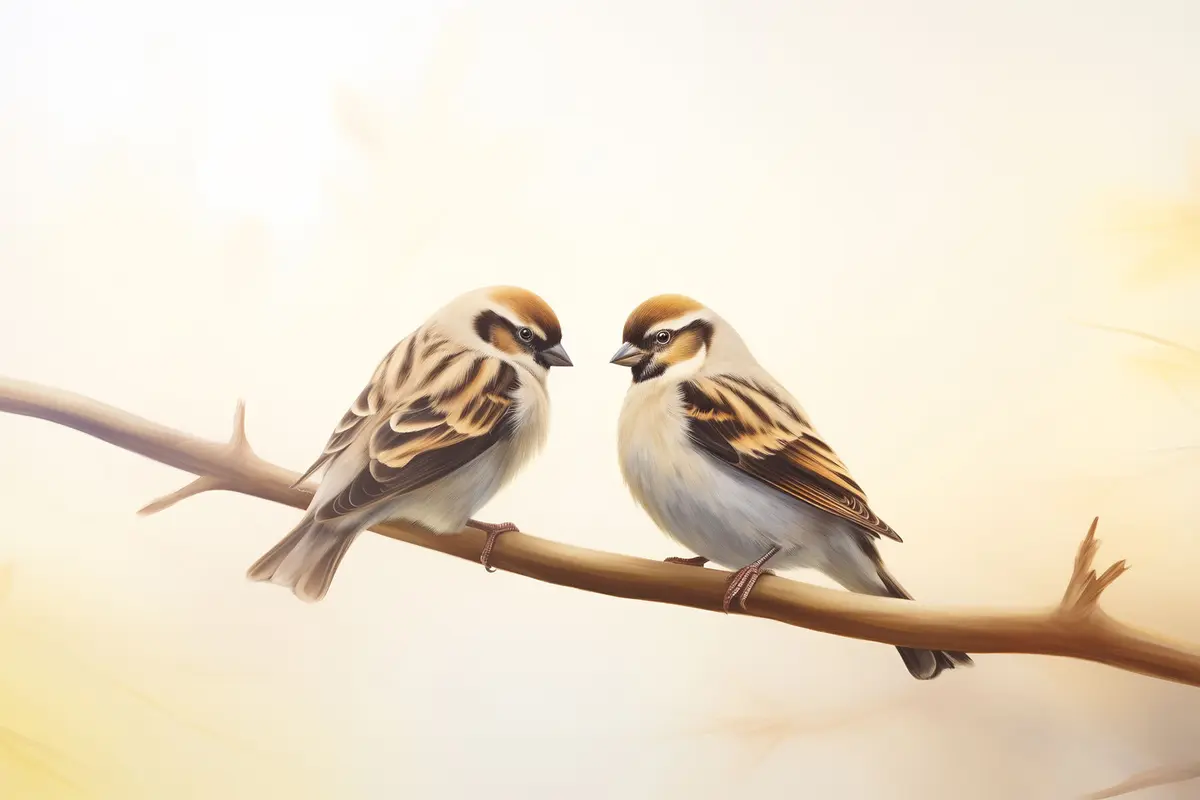 Poster Zwei Spatzen zusammen auf einem Ast Nr f37393