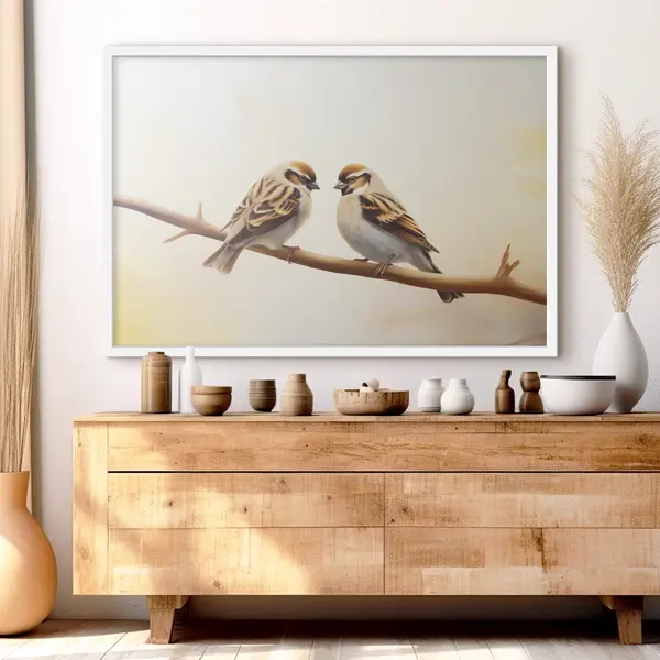 Poster Zwei Spatzen zusammen auf einem Ast f37393