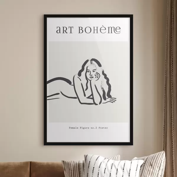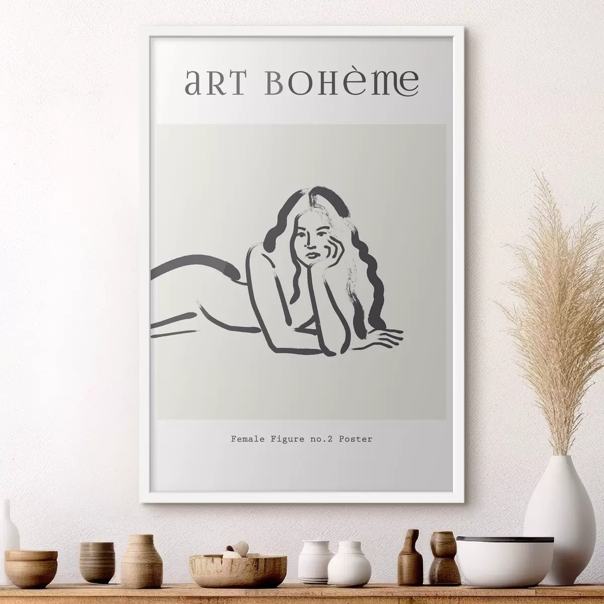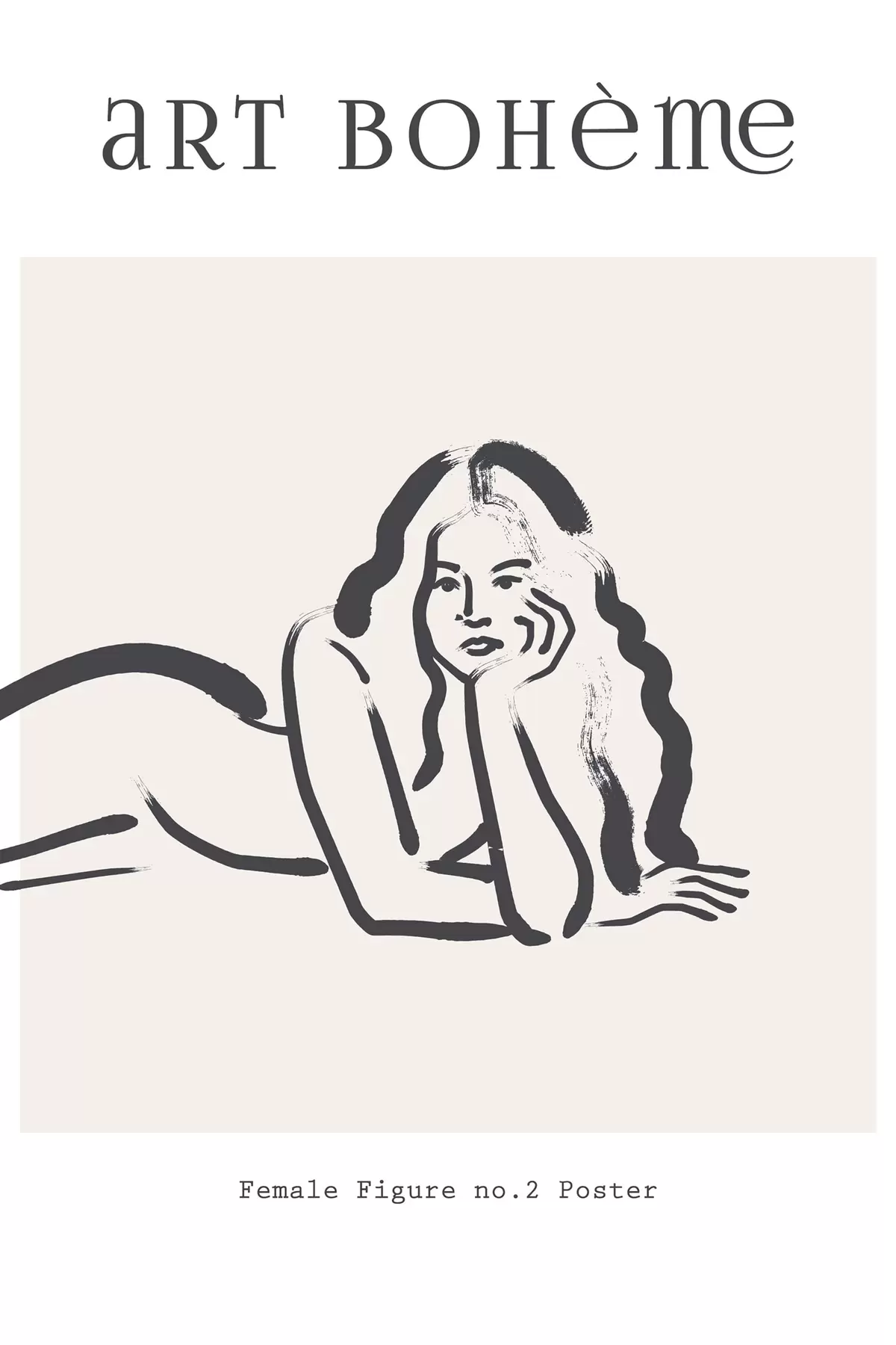 Poster Zeichnung einer auf dem Bauch liegenden Frau Nr f37402