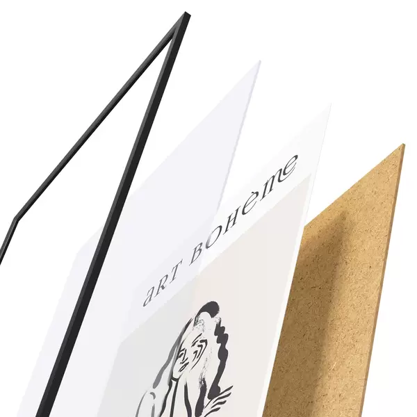 Das Poster besteht aus einem Rahmen, Plexiglas, einem gedruckten Bild und einer Rückwand aus Spanplatten. Dank der Halterungen auf der Rückseite kann das Poster sofort an die Wand gehängt werden.