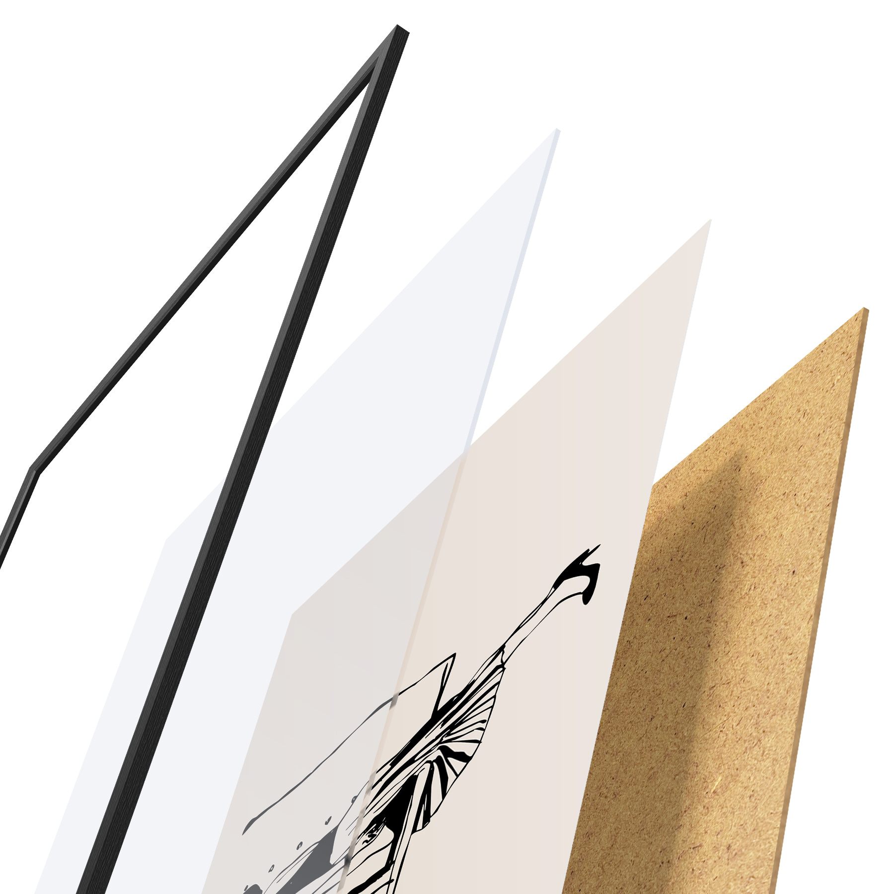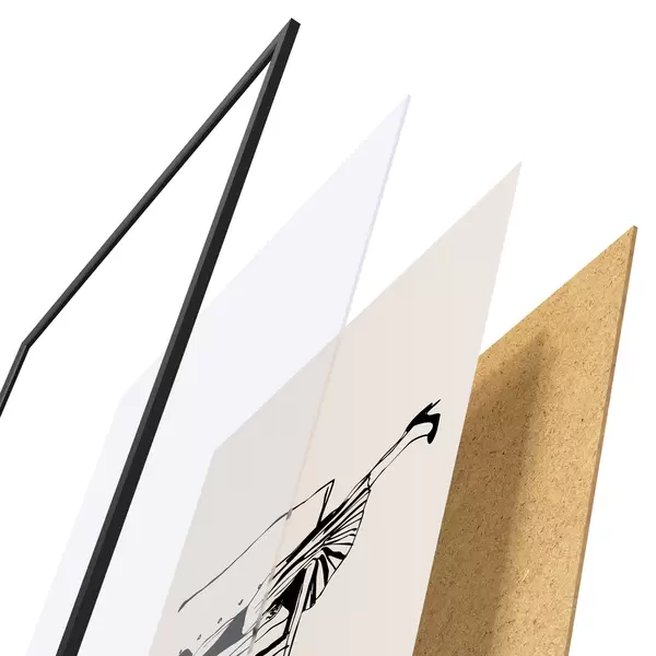 Das Poster besteht aus einem Rahmen, Plexiglas, einem gedruckten Bild und einer Rückwand aus Spanplatten. Dank der Halterungen auf der Rückseite kann das Poster sofort an die Wand gehängt werden.