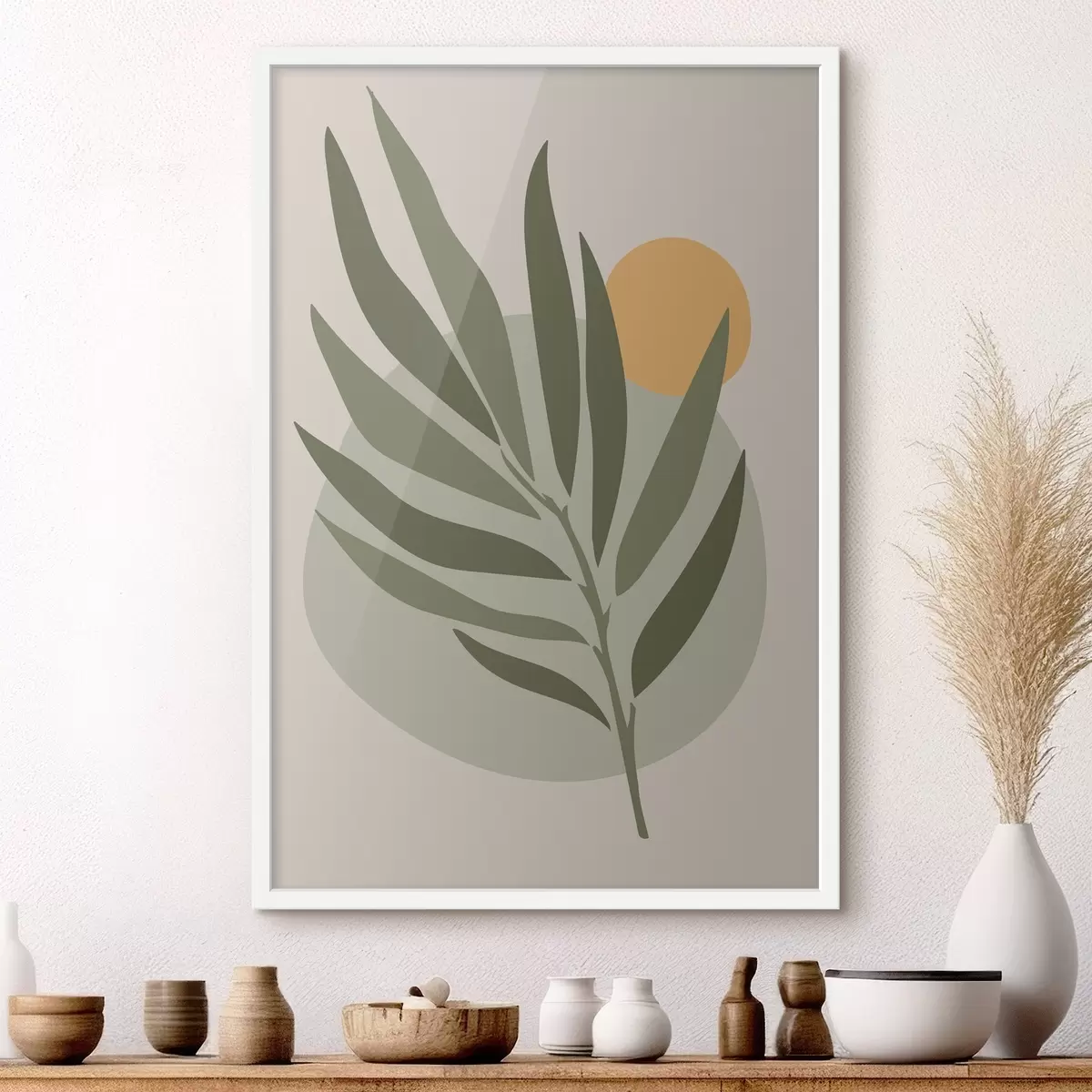 Poster Grünes Blatt mit gelbem Kreis Nr f37442