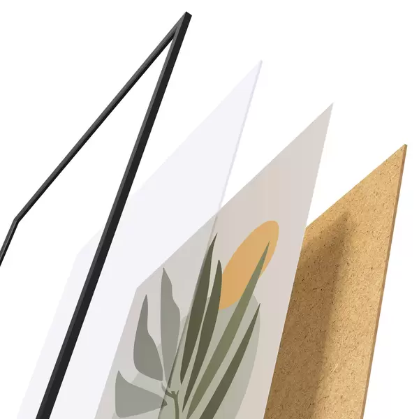 Das Poster besteht aus einem Rahmen, Plexiglas, einem gedruckten Bild und einer Rückwand aus Spanplatten. Dank der Halterungen auf der Rückseite kann das Poster sofort an die Wand gehängt werden.