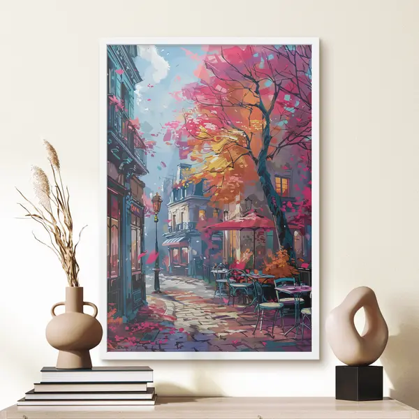 Poster Eine bezaubernde Herbstszene auf der Straße entfaltet sich wunderschön Nr f37459