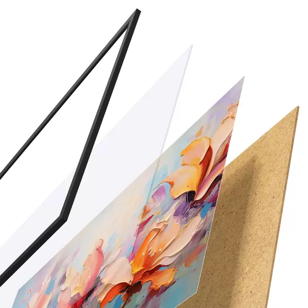 Das Poster besteht aus einem Rahmen, Plexiglas, einem gedruckten Bild und einer Rückwand aus Spanplatten. Dank der Halterungen auf der Rückseite kann das Poster sofort an die Wand gehängt werden.