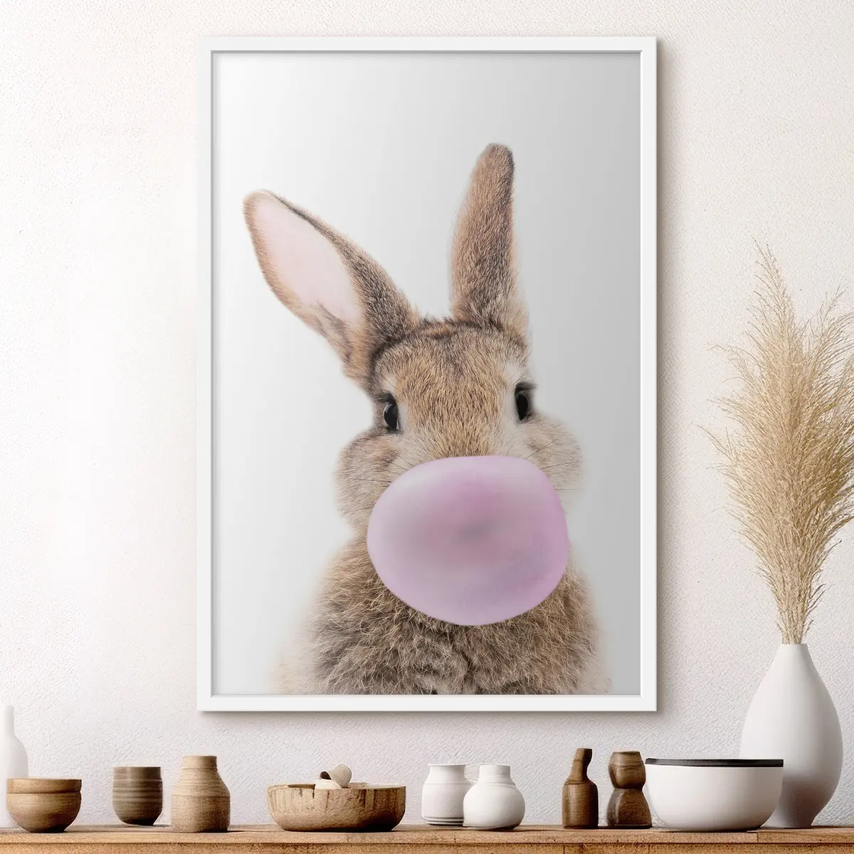 Poster Hase bläst eine Kaugummiblase Nr f37773