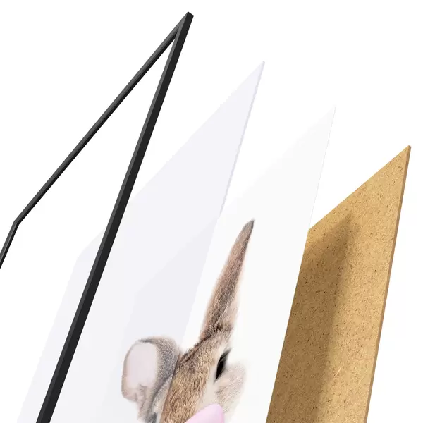 Das Poster besteht aus einem Rahmen, Plexiglas, einem gedruckten Bild und einer Rückwand aus Spanplatten. Dank der Halterungen auf der Rückseite kann das Poster sofort an die Wand gehängt werden.