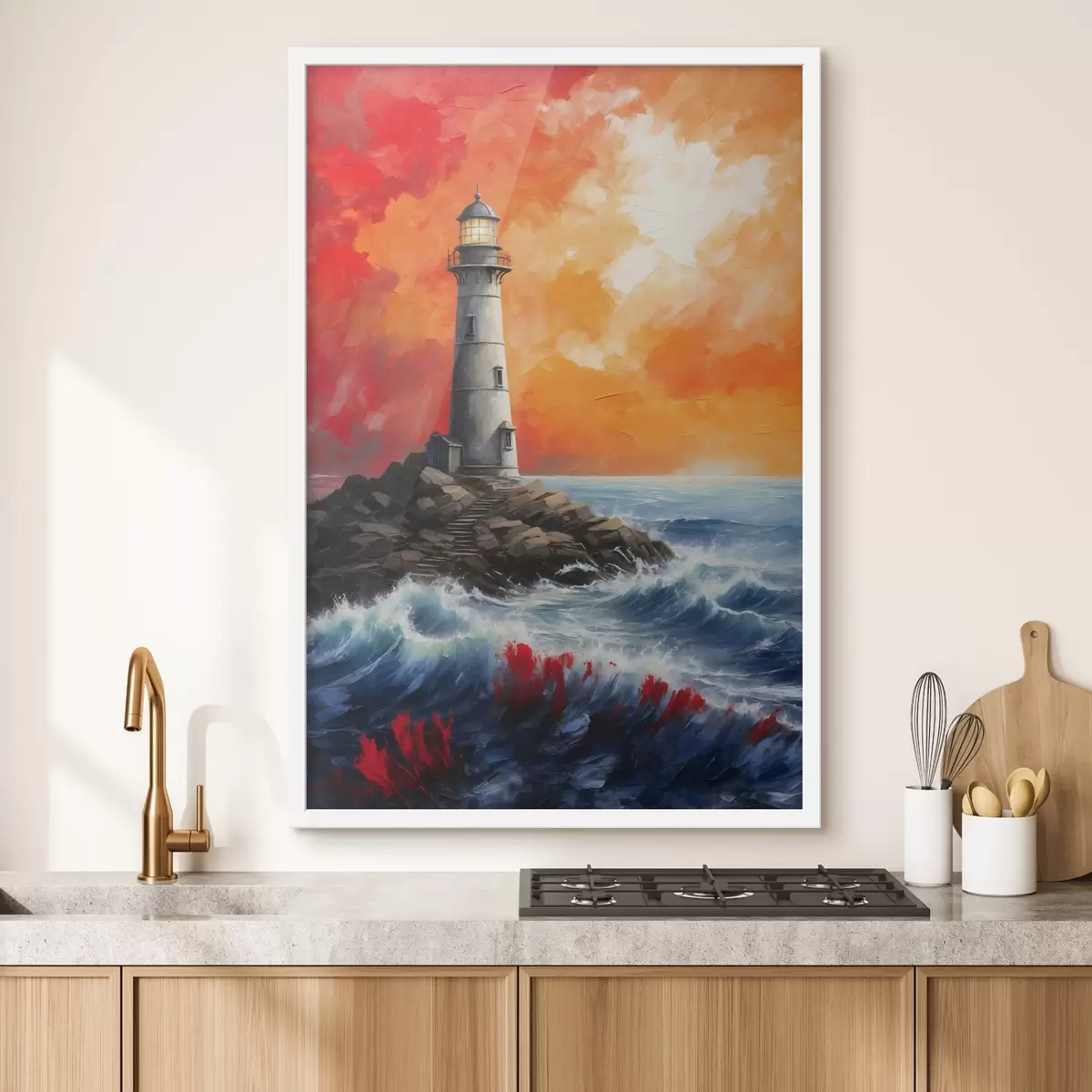 Poster Leuchtturm auf einer felsigen Insel Nr f37808