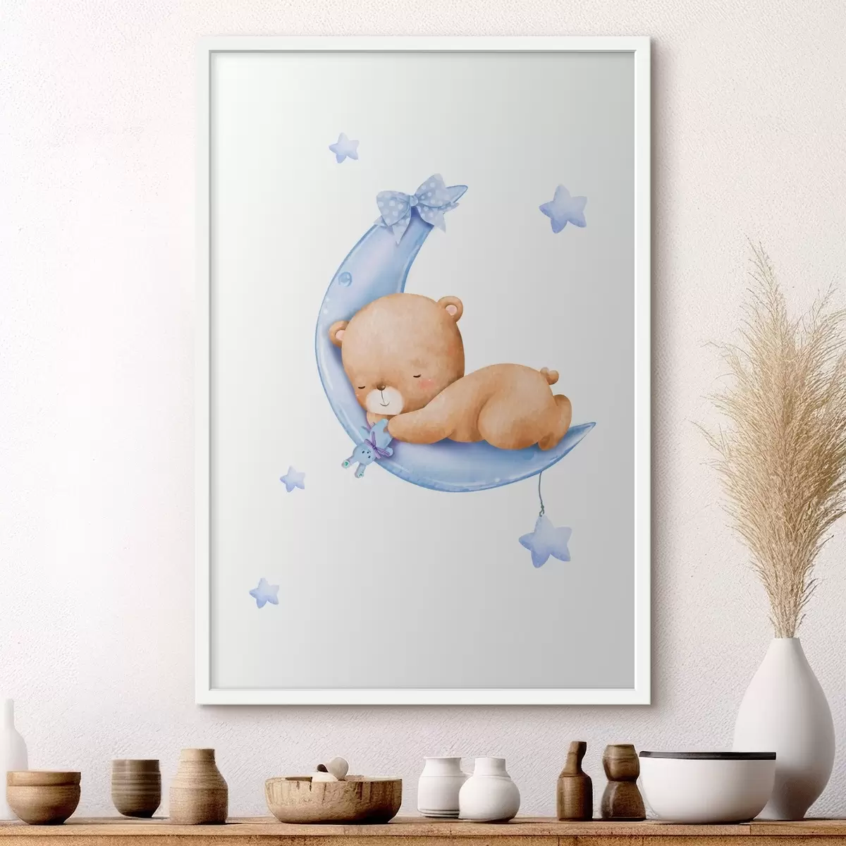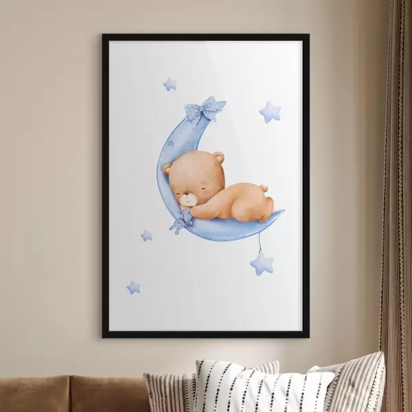 Poster Bär schlafend auf einer Mondsichel f37917v1