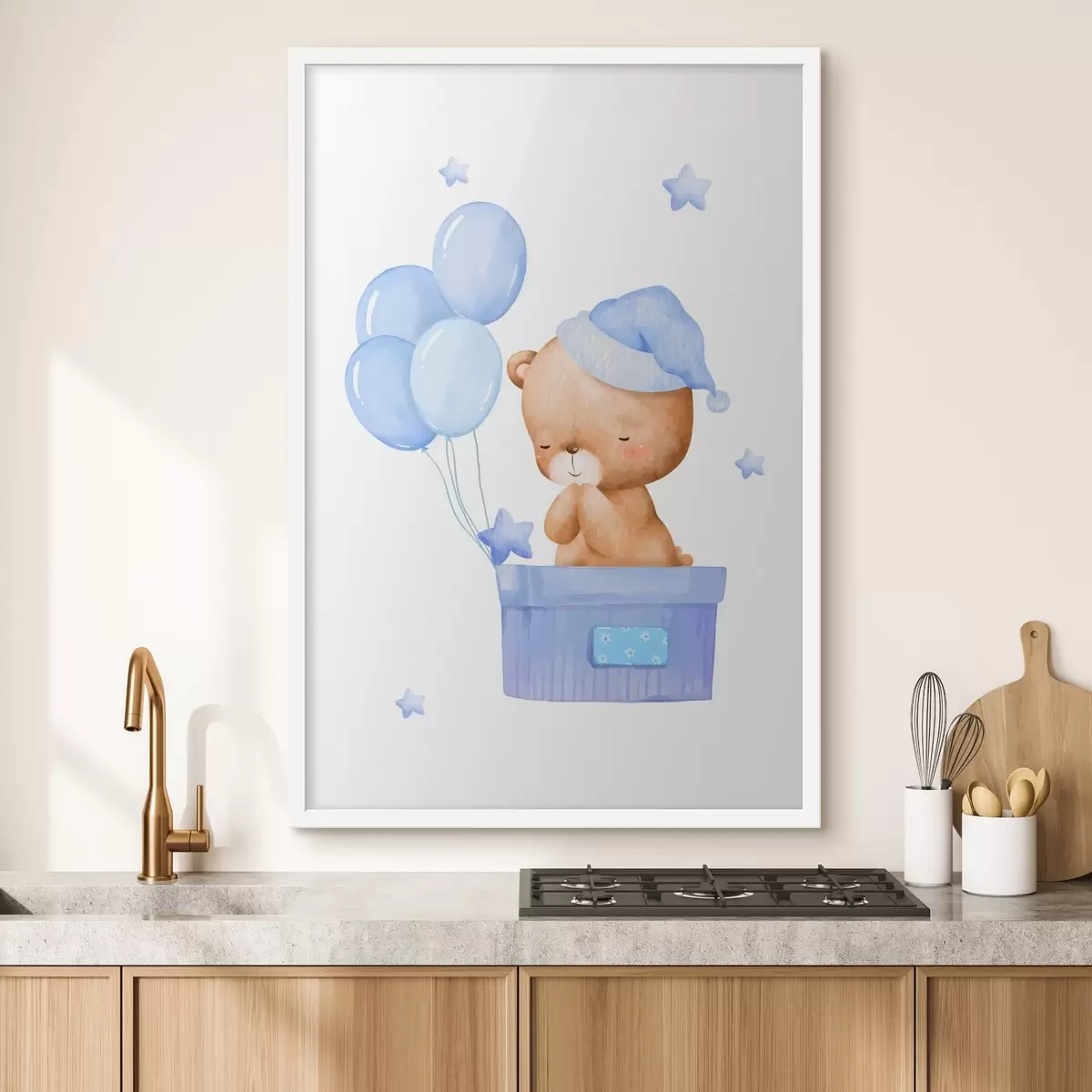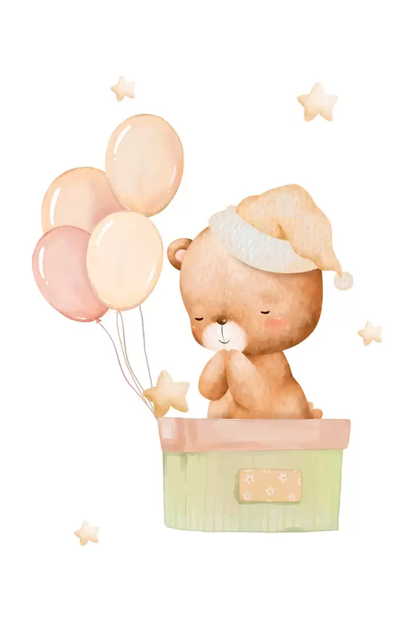 Poster Liebenswerter Bär mit fröhlichen Luftballons Nr f37918v1
