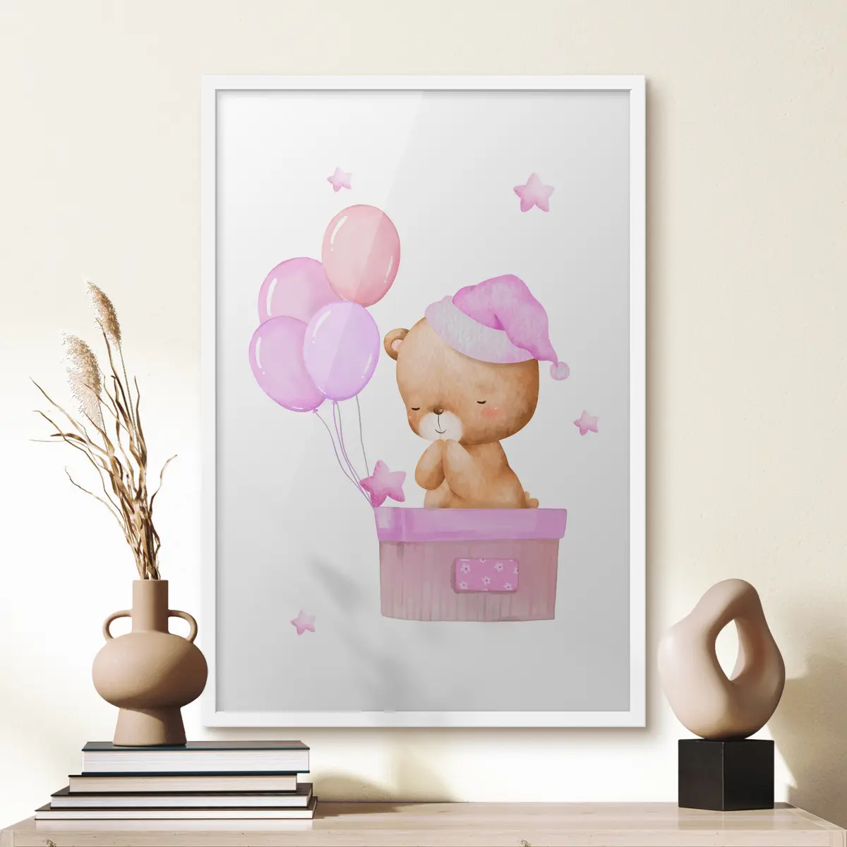 Poster Teddybär mit Luftballons und Sternen Nr f37918v2