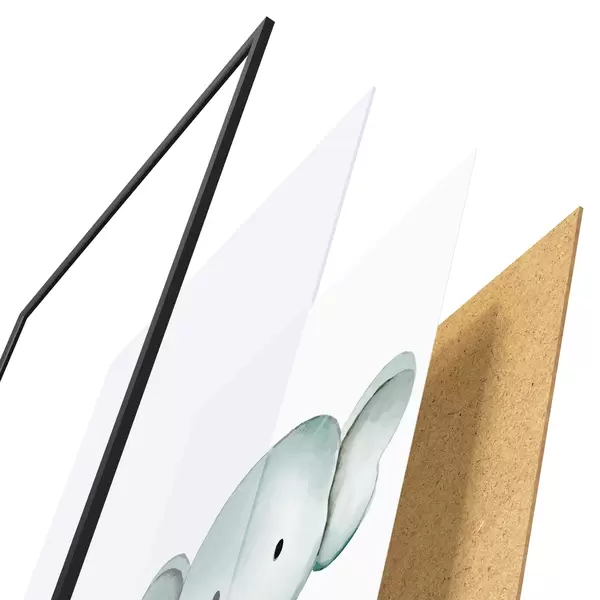 Das Poster besteht aus einem Rahmen, Plexiglas, einem gedruckten Bild und einer Rückwand aus Spanplatten. Dank der Halterungen auf der Rückseite kann das Poster sofort an die Wand gehängt werden.
