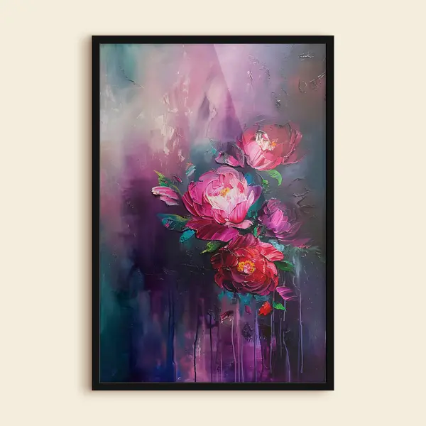 Poster Malen von Rosen, blühenden Blumen im Ölgemälde-Stil, auf einem dunkelvioletten Hintergrund f38108