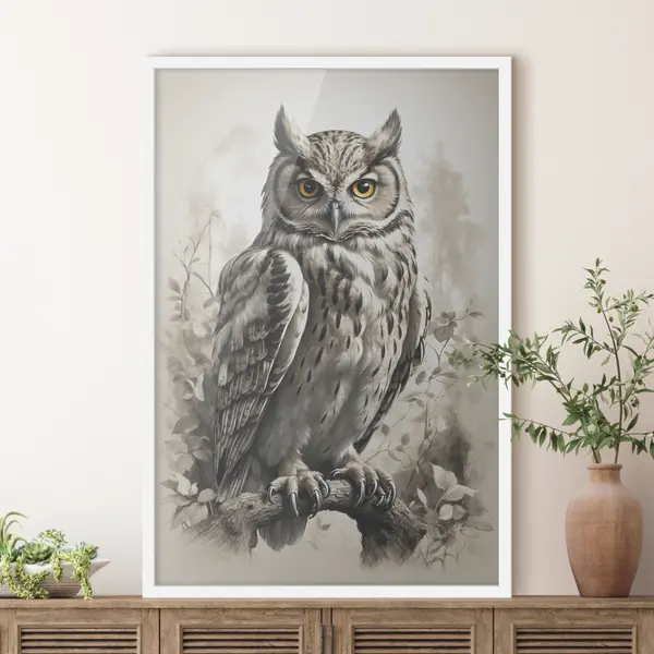 Poster Eule auf schwarzem und weißem Hintergrund Nr f38118