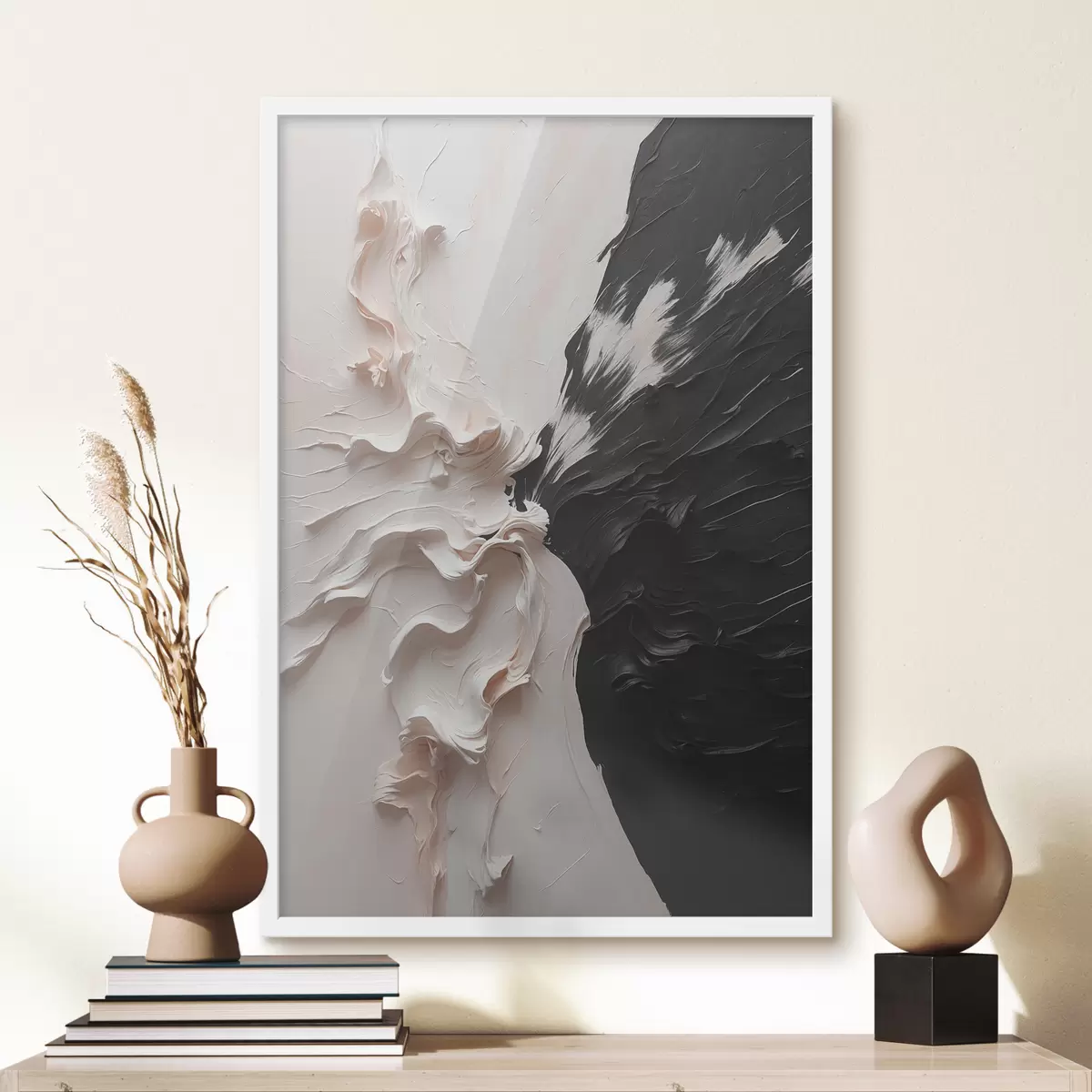 Poster Abstraktes Ölgemälde in Weiß- und Schwarztönen Nr f38300
