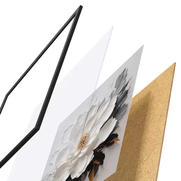 Das Poster besteht aus einem Rahmen, Plexiglas, einem gedruckten Bild und einer Rückwand aus Spanplatten. Dank der Halterungen auf der Rückseite kann das Poster sofort an die Wand gehängt werden.