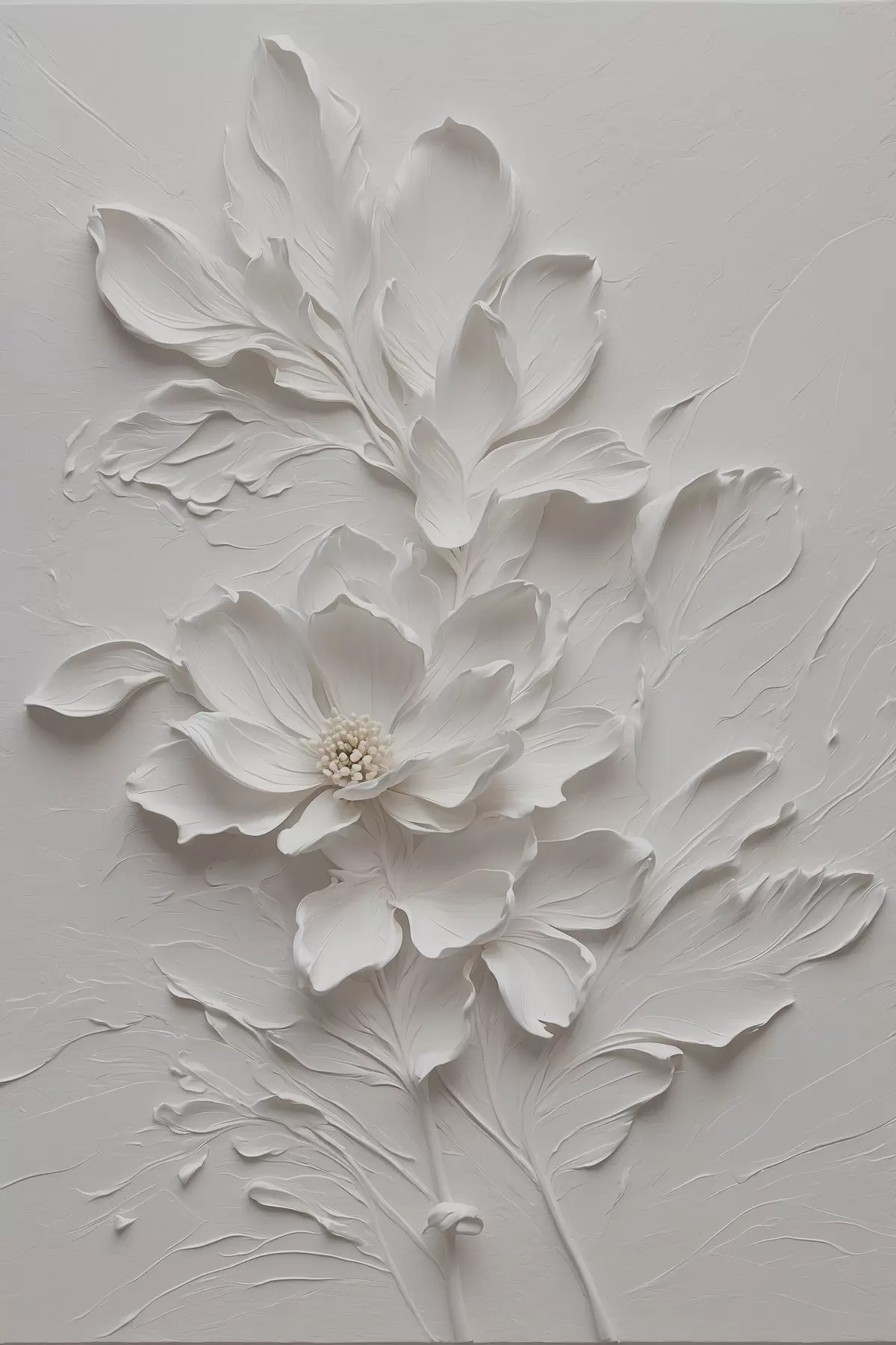 Poster Weiße Blume auf weißem Hintergrund in Öl Nr f38305