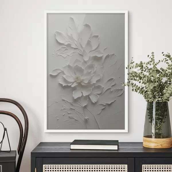 Poster Weiße Blume auf weißem Hintergrund in Öl f38305