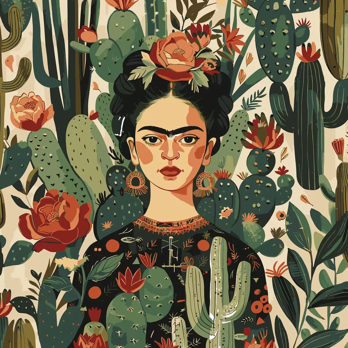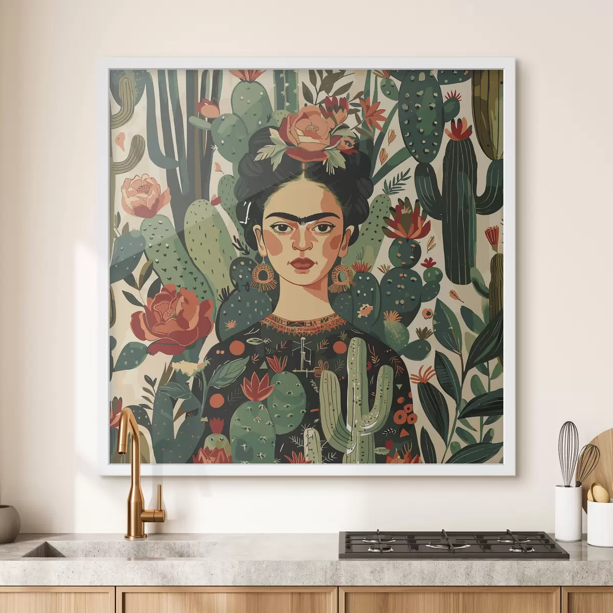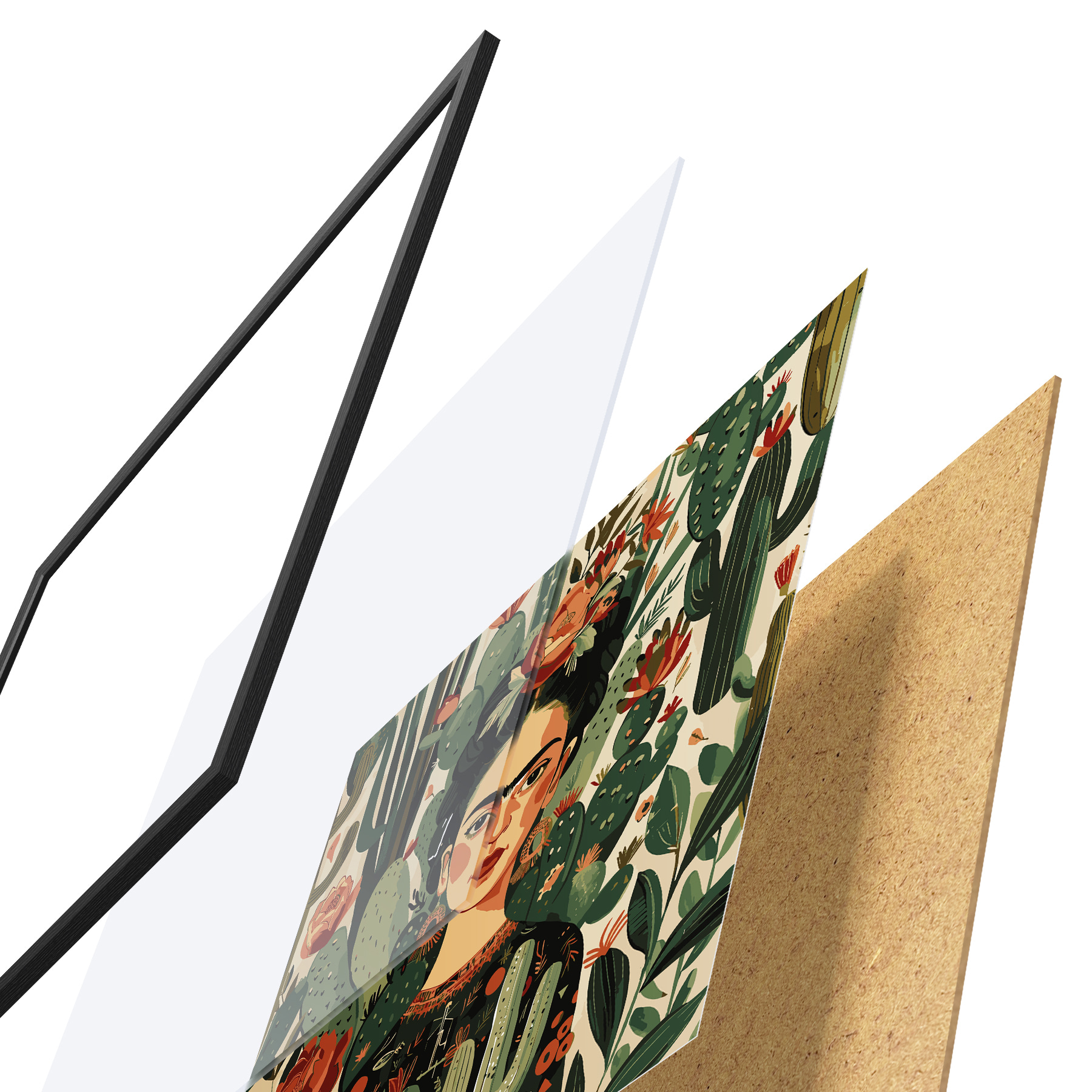 Poster Frida im grünen Stil mit Kakteen Nr f38415