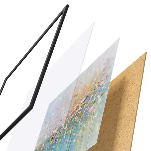 Das Poster besteht aus einem Rahmen, Plexiglas, einem gedruckten Bild und einer Rückwand aus Spanplatten. Dank der Halterungen auf der Rückseite kann das Poster sofort an die Wand gehängt werden.
