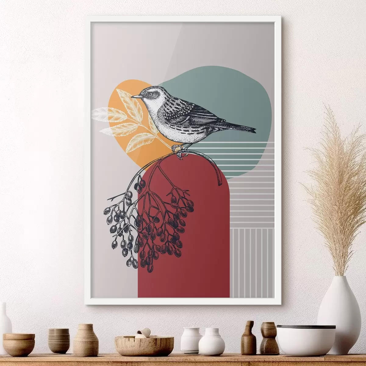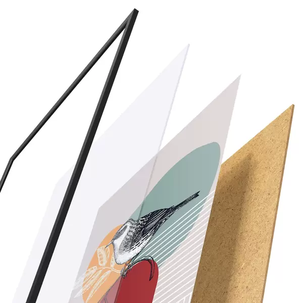 Das Poster besteht aus einem Rahmen, Plexiglas, einem gedruckten Bild und einer Rückwand aus Spanplatten. Dank der Halterungen auf der Rückseite kann das Poster sofort an die Wand gehängt werden.