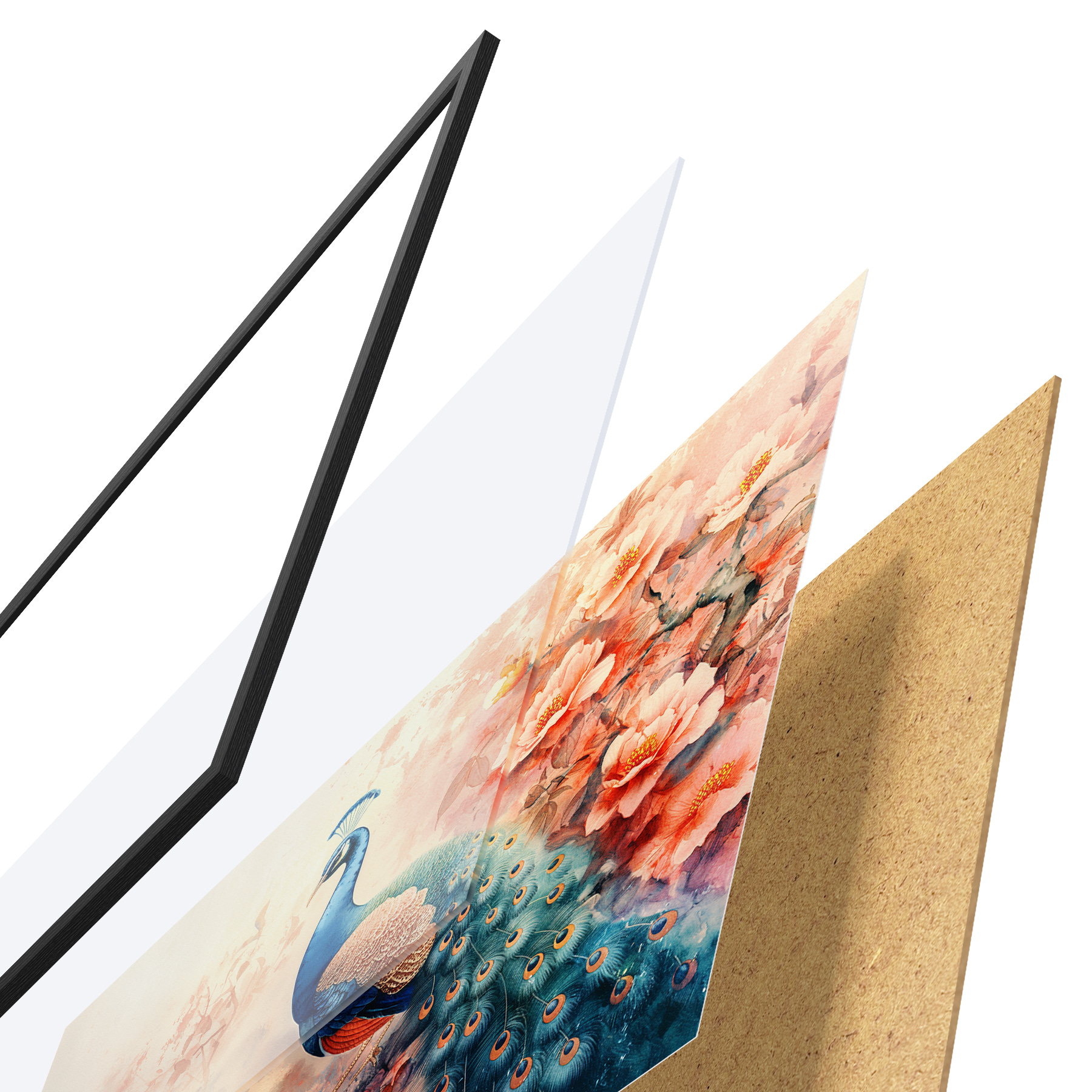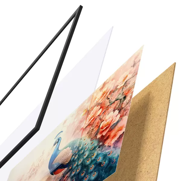 Das Poster besteht aus einem Rahmen, Plexiglas, einem gedruckten Bild und einer Rückwand aus Spanplatten. Dank der Halterungen auf der Rückseite kann das Poster sofort an die Wand gehängt werden.
