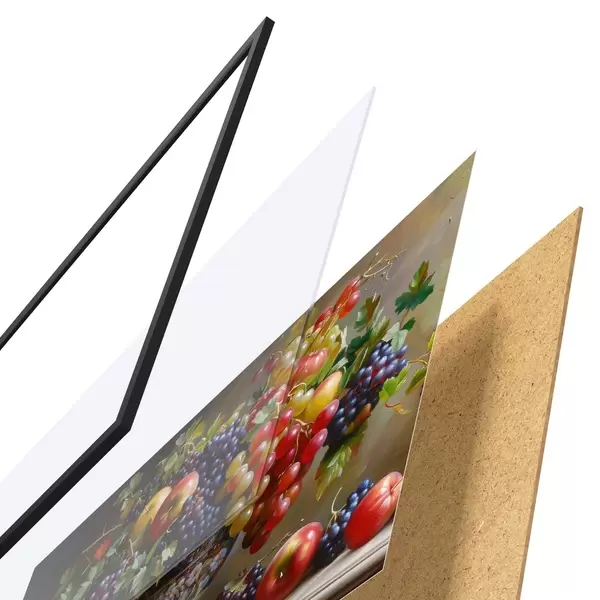 Das Poster besteht aus einem Rahmen, Plexiglas, einem gedruckten Bild und einer Rückwand aus Spanplatten. Dank der Halterungen auf der Rückseite kann das Poster sofort an die Wand gehängt werden.